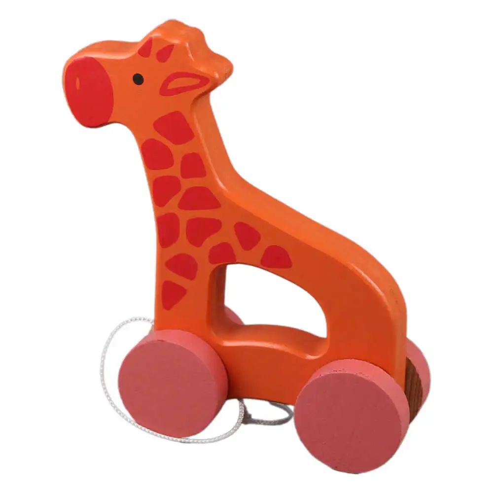 Jucarie de tras din lemn, Girafa, 14×16 CM