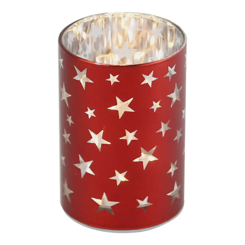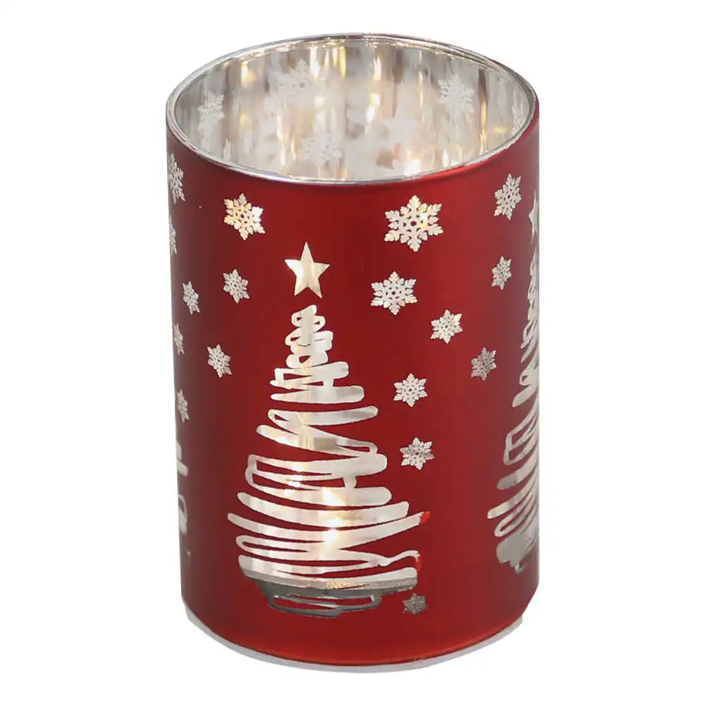 Lampa cilindrica din sticla cu lumini led 7×10 CM, Craciun