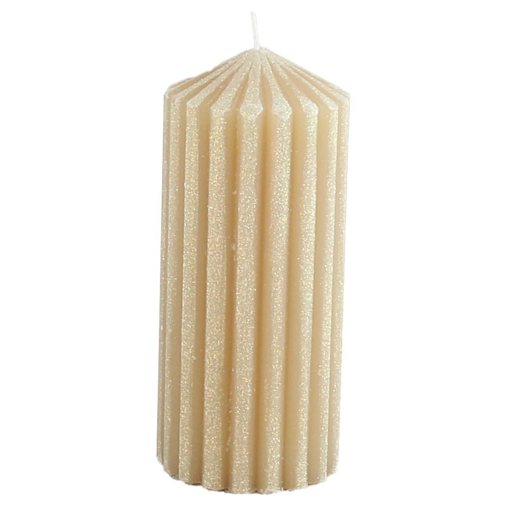 Lumanare cu glitter sampaniu, Grooved 7×16 CM