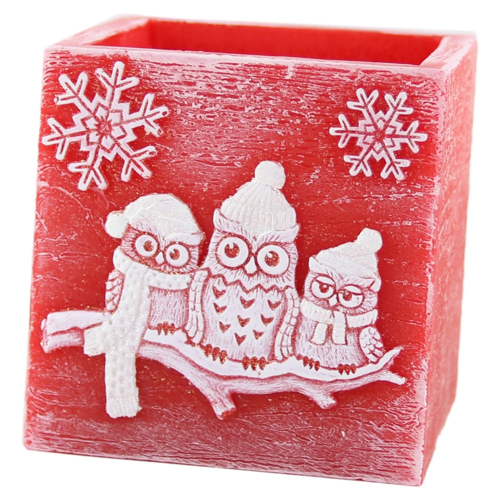 Lumanare de Craciun tip lampion cu bufnite 11×11 CM – Winter Owl Red
