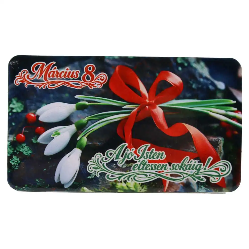 Magnet de frigider „Marcius 8, A jo Isten eltessen sokaig”, 9.5 x 5.5 cm, din plastic