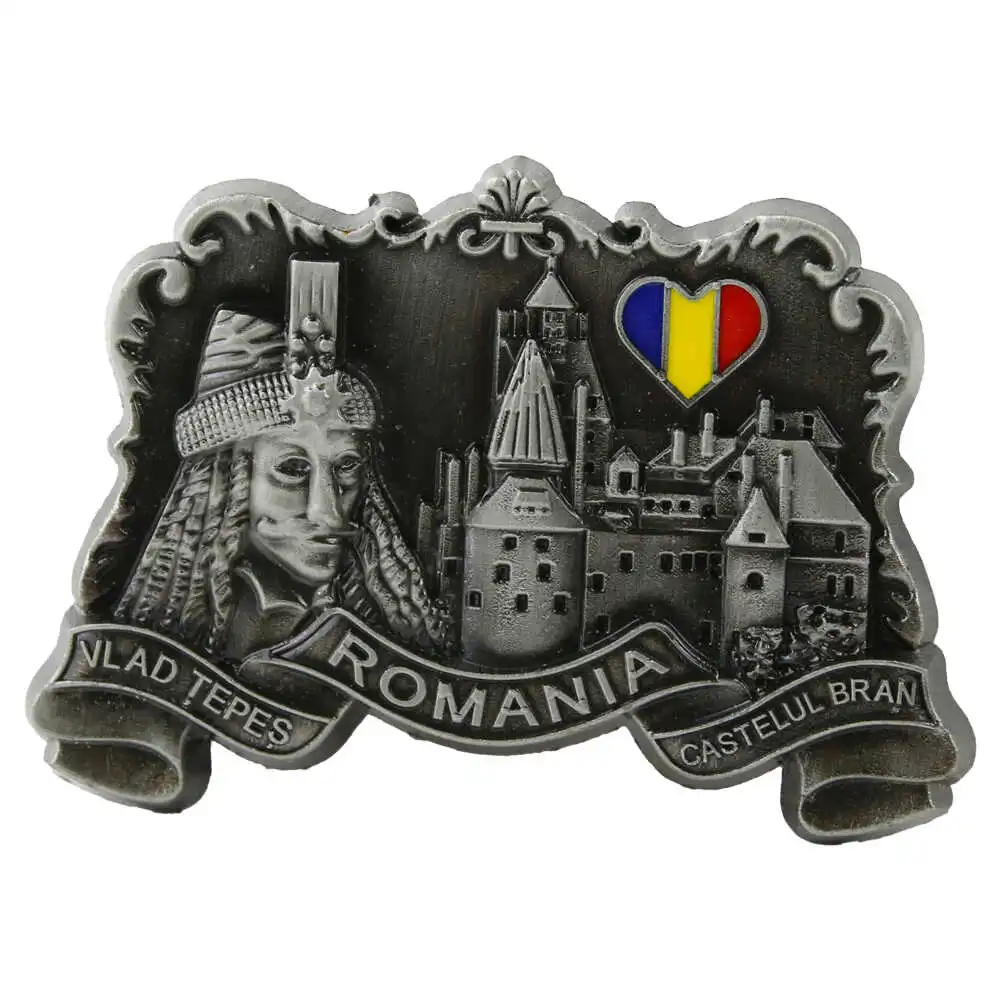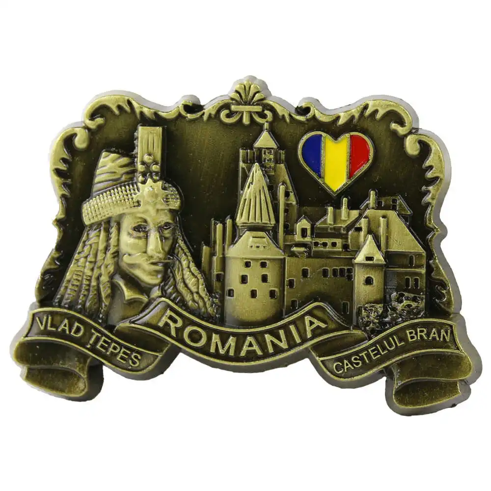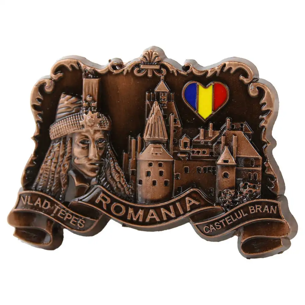 Magnet de frigider metalic 8.5 x 6 cm, Romania/Vlad Tepes & Castelul Bran