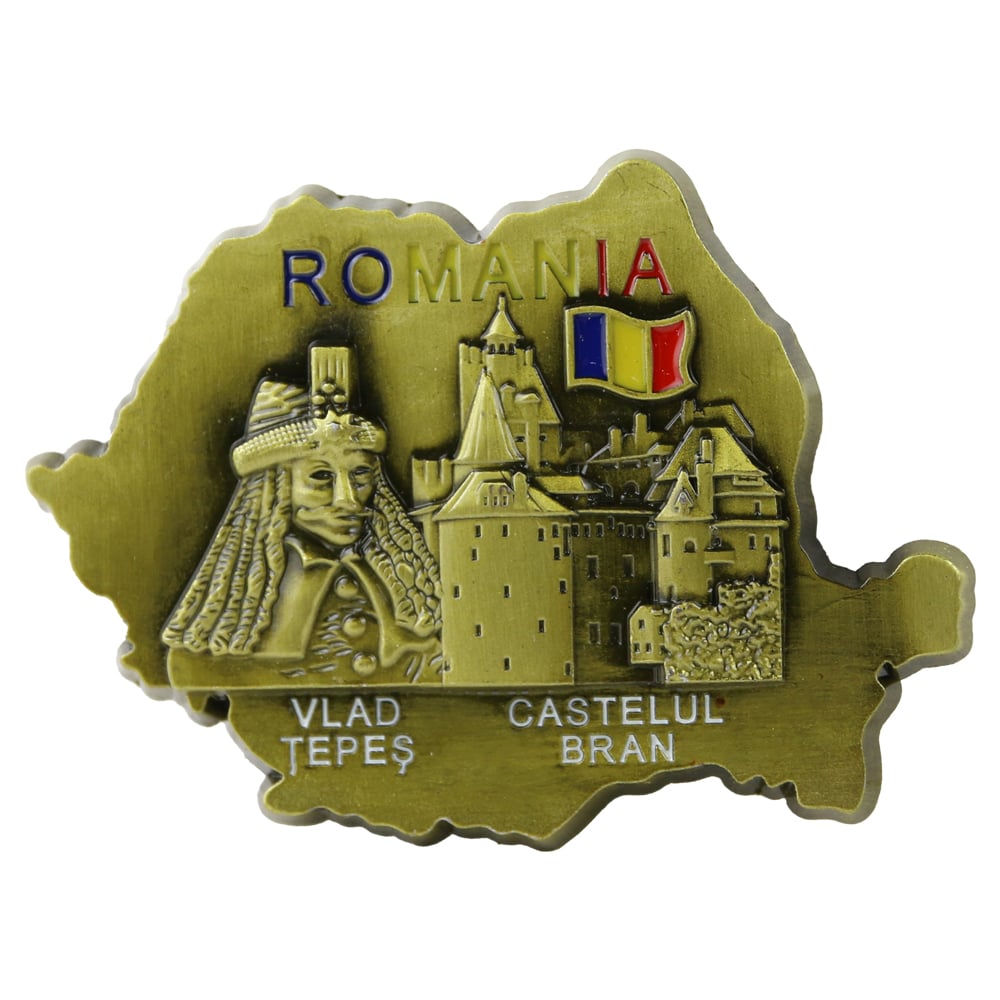Magnet de frigider metalic 9 x 6 cm, Romania/Castelul Bran, Harta