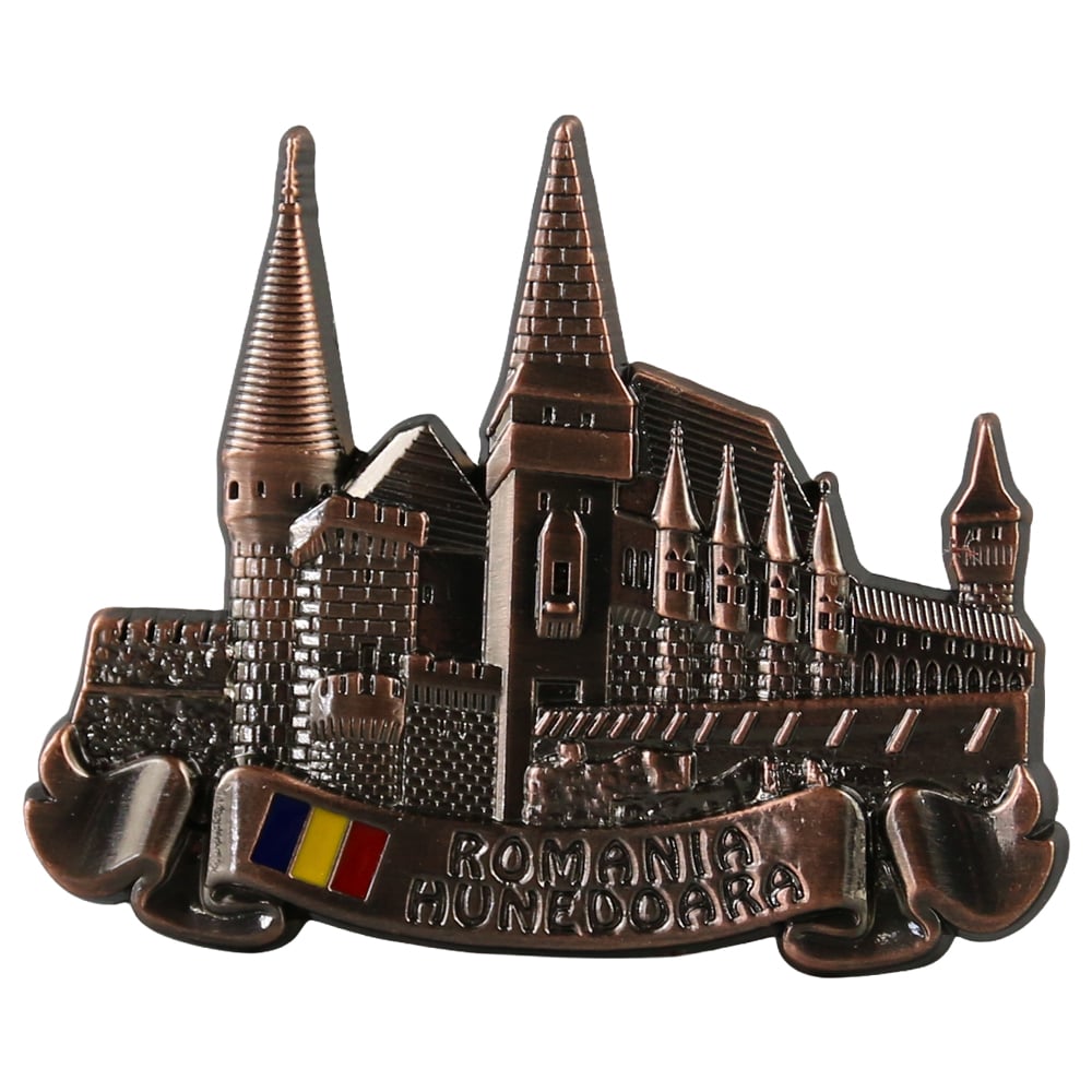 Magnet de frigider metalic „Romania / Hunedoara” 7 x 5.5 cm
