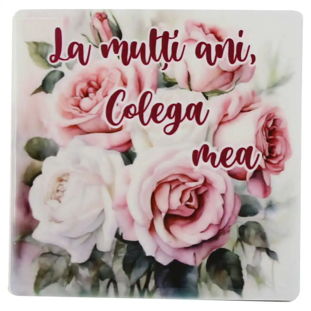 Magnet din ceramica „La multi ani, Colega mea!”, 7.5×7.5 CM, trandafiri