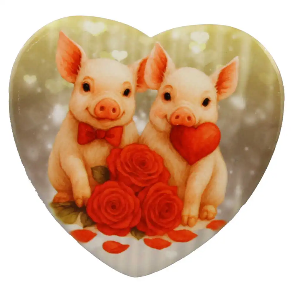 Magnet frigider ceramica inima, 8 cm, cu purcelusi