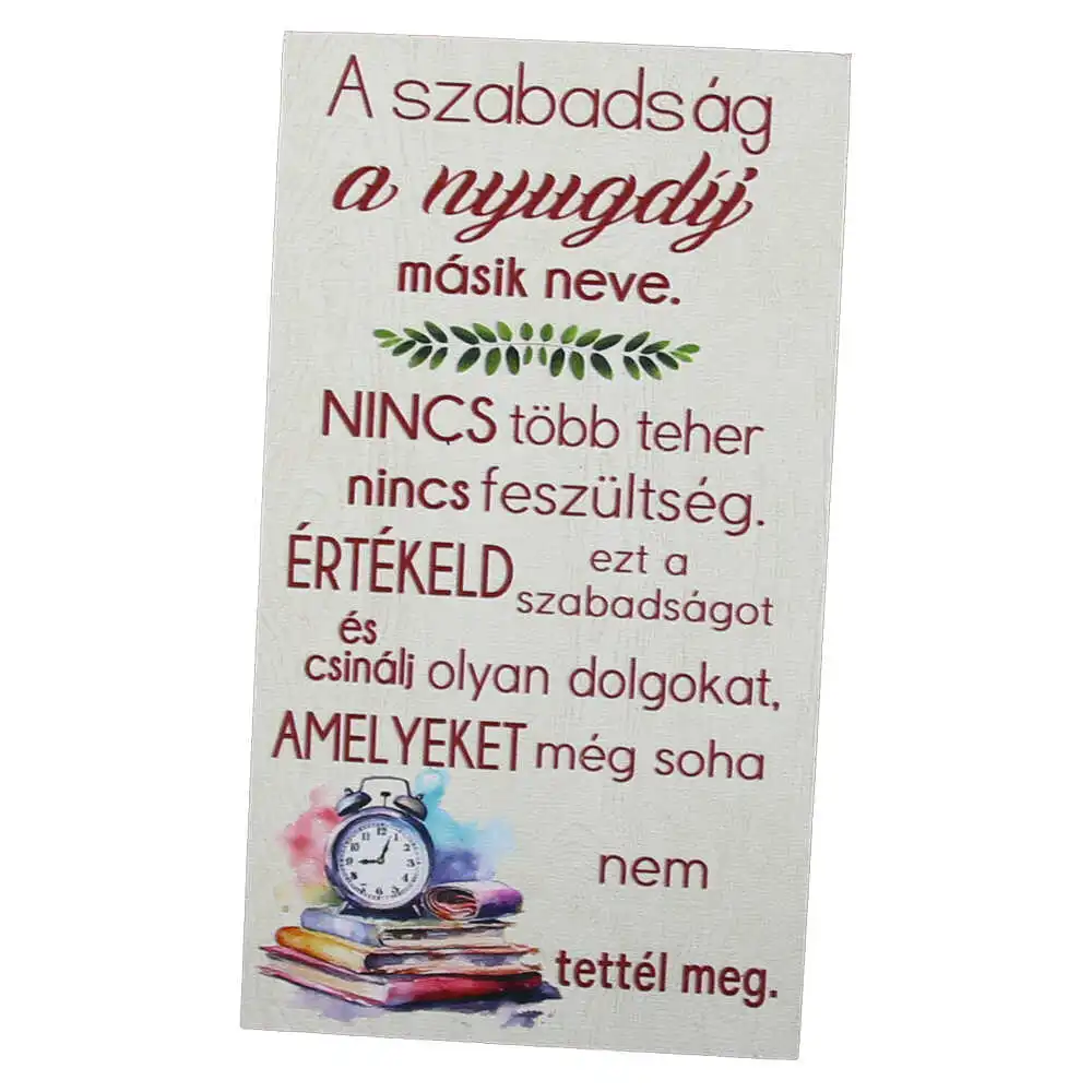 Magnet frigider din lemn „A szabadsag a nyugdij masik neve…” 8×14 CM