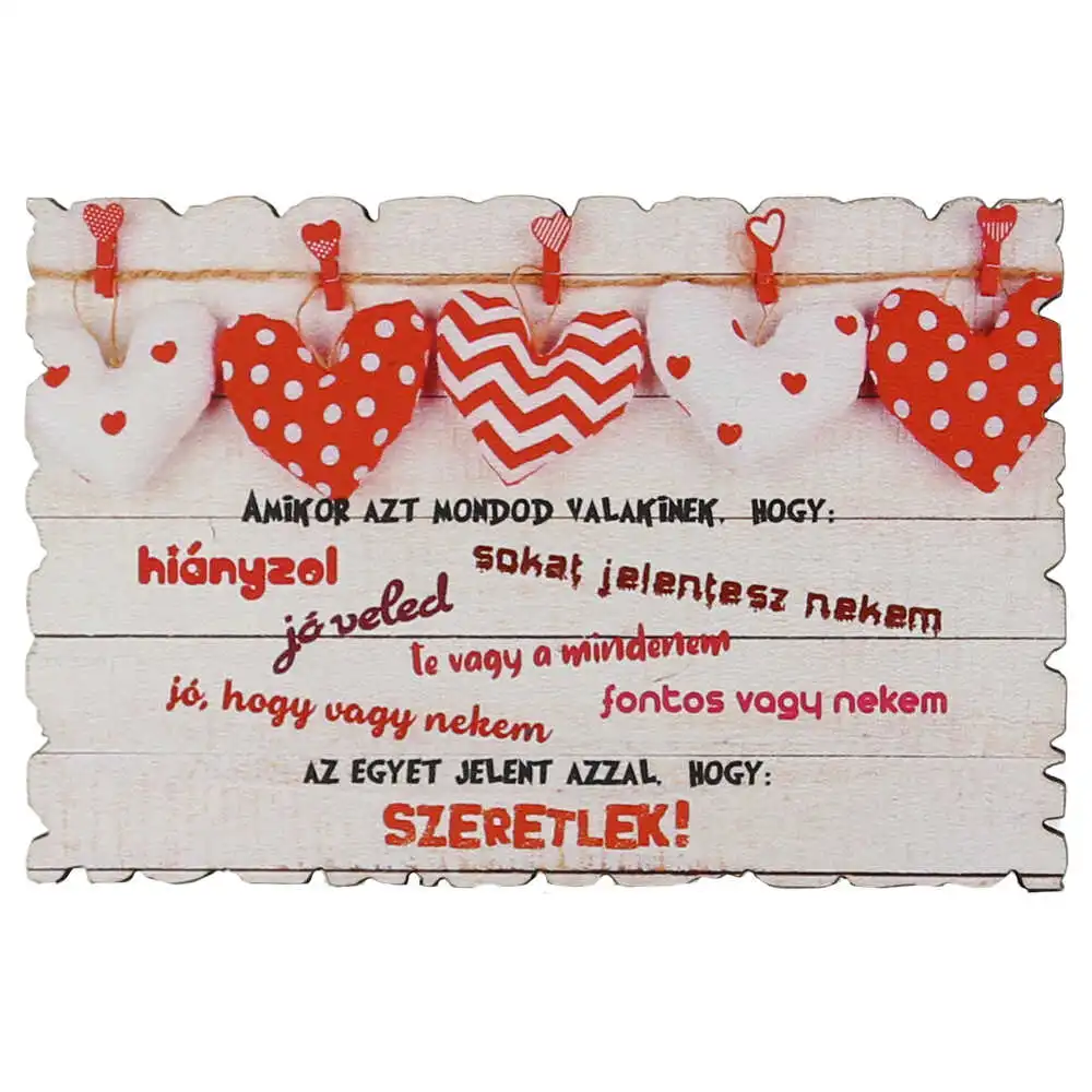 Magnet frigider din lemn „Amikor azt mondod valakinek…Szeretlek!” 9×6 CM