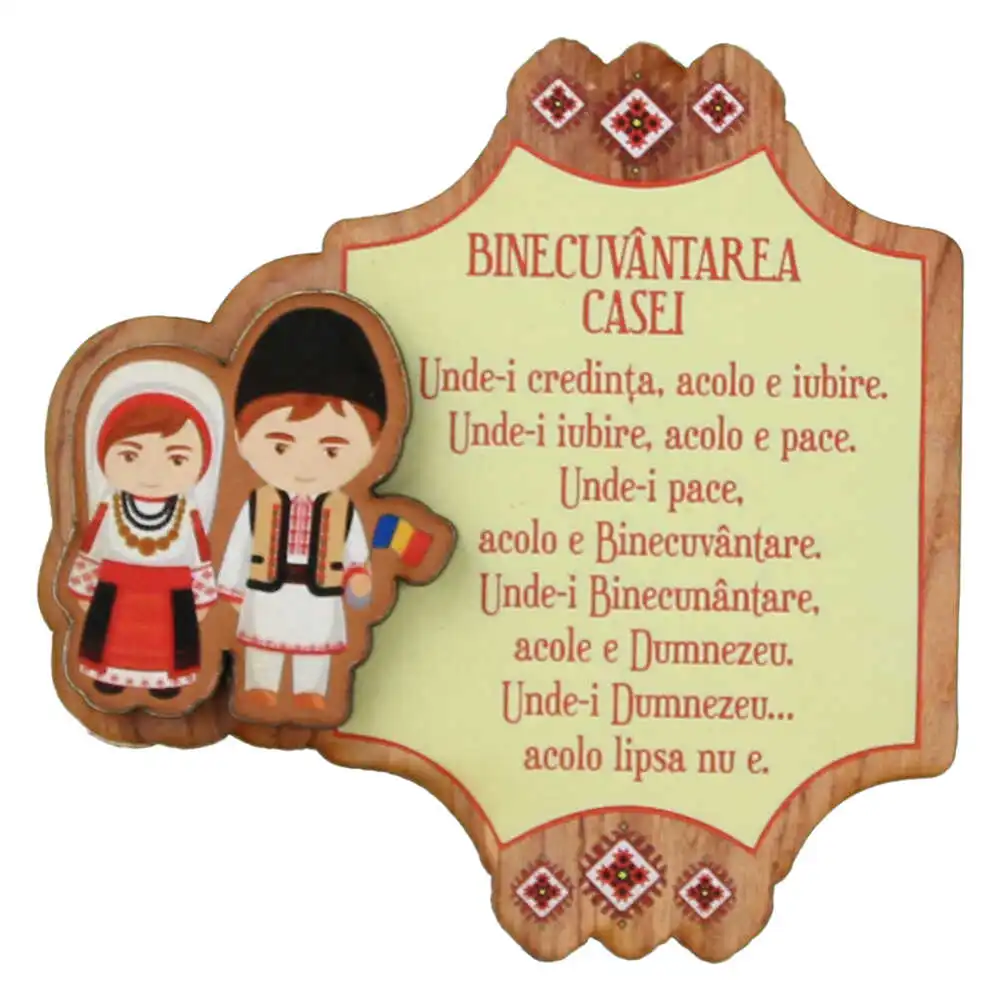 Magnet frigider din lemn „Binecuvantarea Casei” 9×9 CM, cuplu in port popular