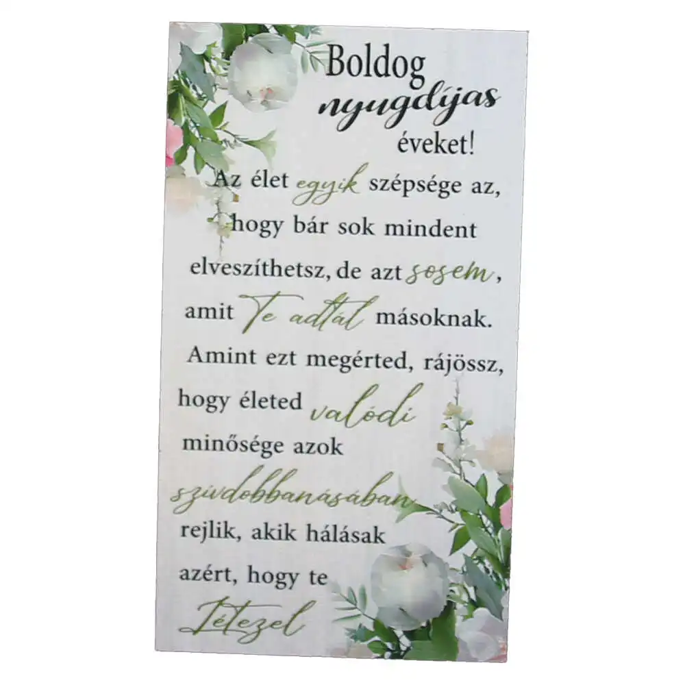 Magnet frigider din lemn „Boldog Nyugdijas eveket!…” 8×14 CM