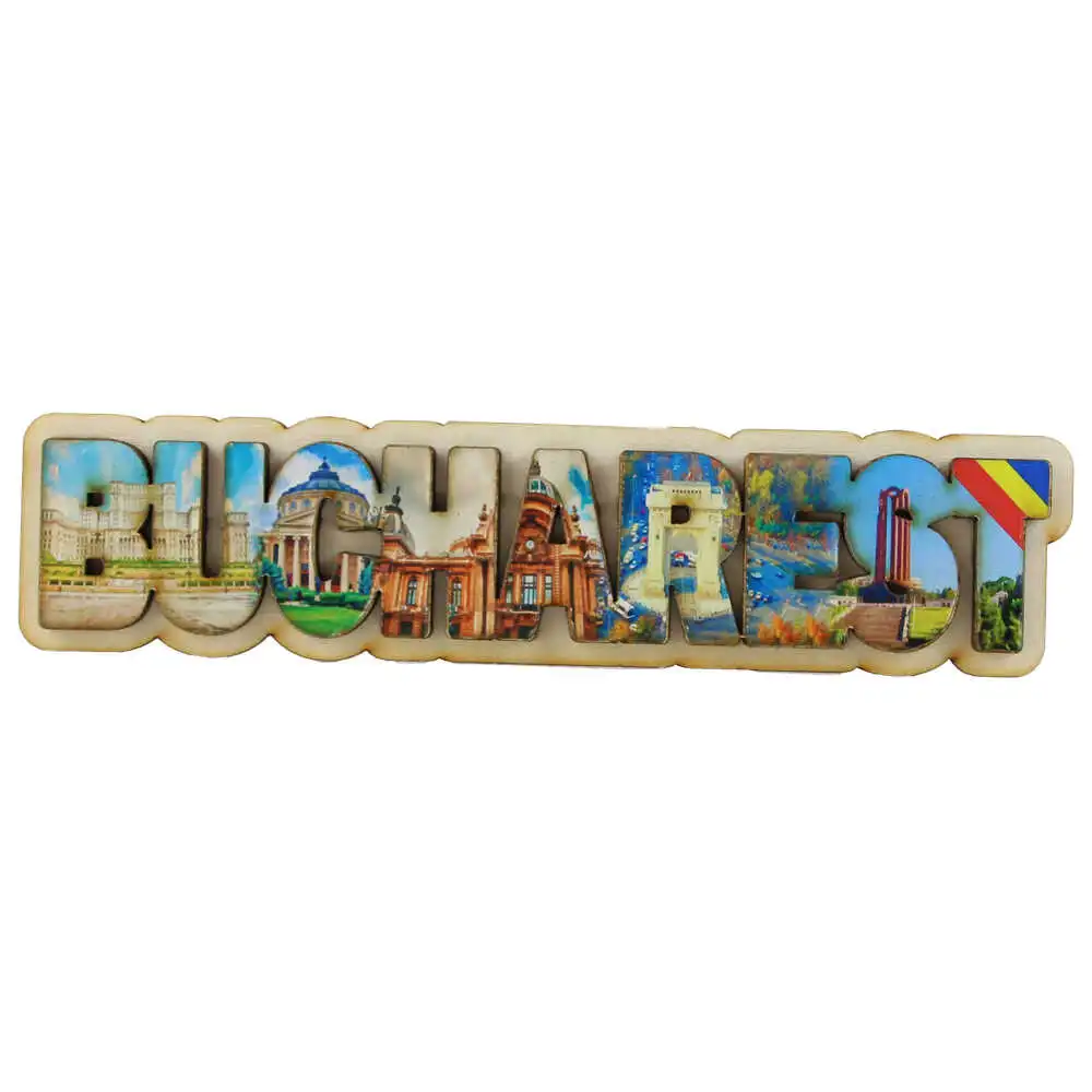 Magnet frigider din lemn „Bucharest” 17×4 CM, colaj