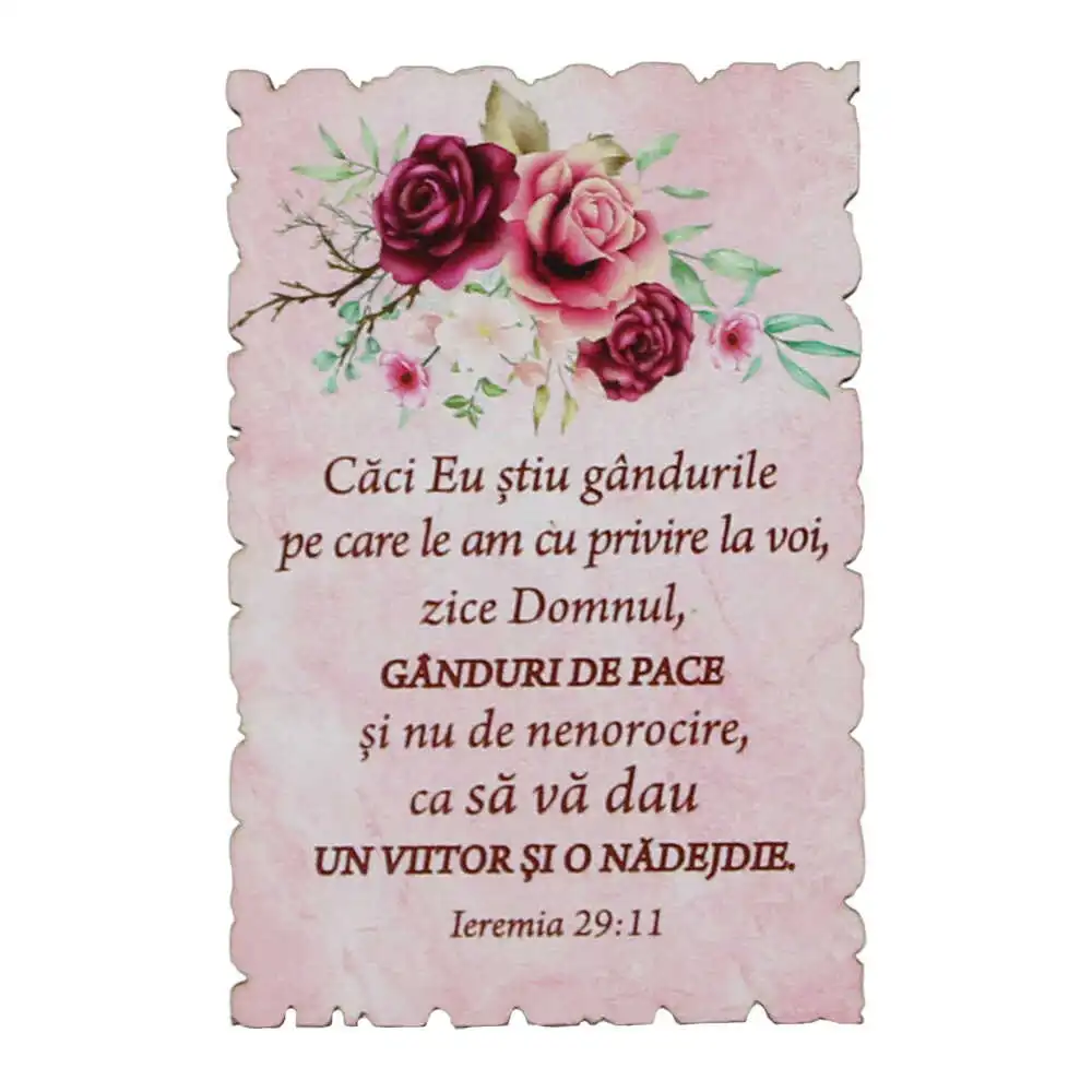 Magnet frigider din lemn „Caci eu stiu gandurile…” 9×6 CM, Ieremia 29:11