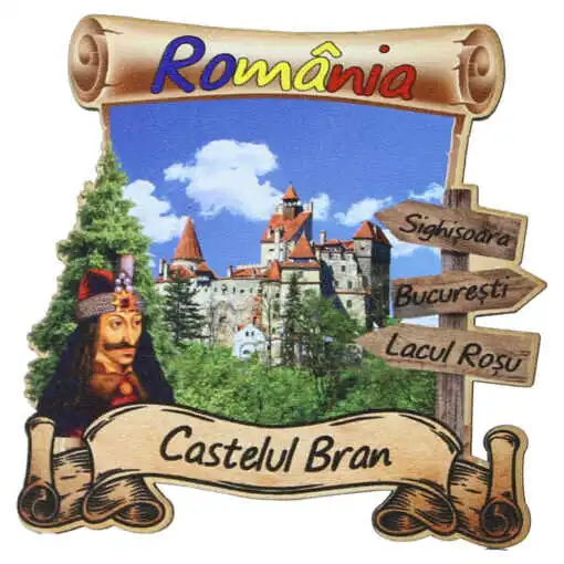 Magnet frigider din lemn „Castelul Bran” 8×8 CM, Romania