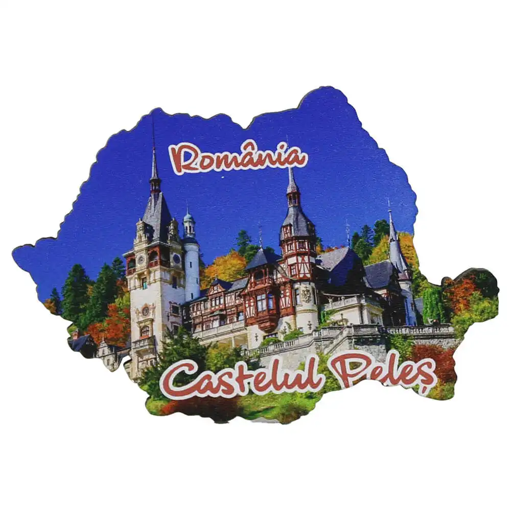 Magnet frigider din lemn, Harta Romaniei, 9×6 CM, Castelul Peles
