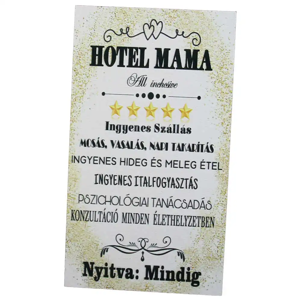 Magnet frigider din lemn „Hotel Mama…” 8×14 CM