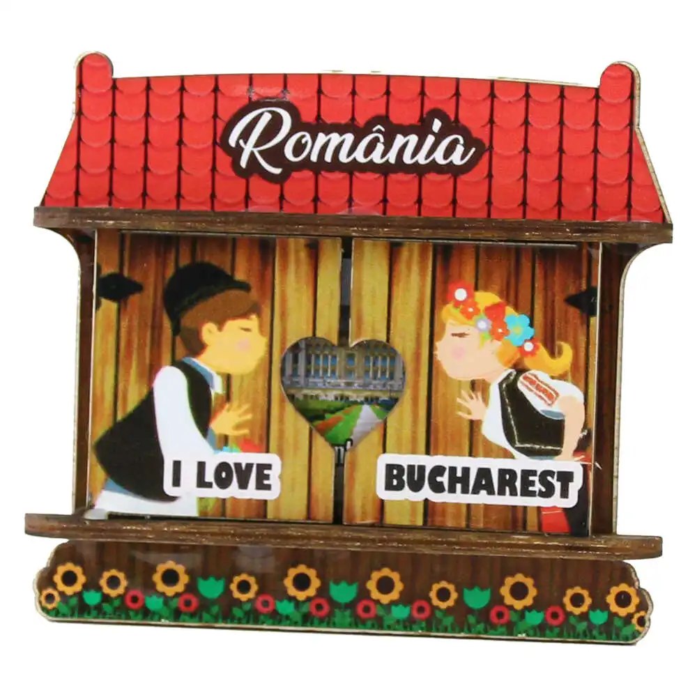 Magnet frigider din lemn „I Love Bucharest”, 9×8 CM, Casuta