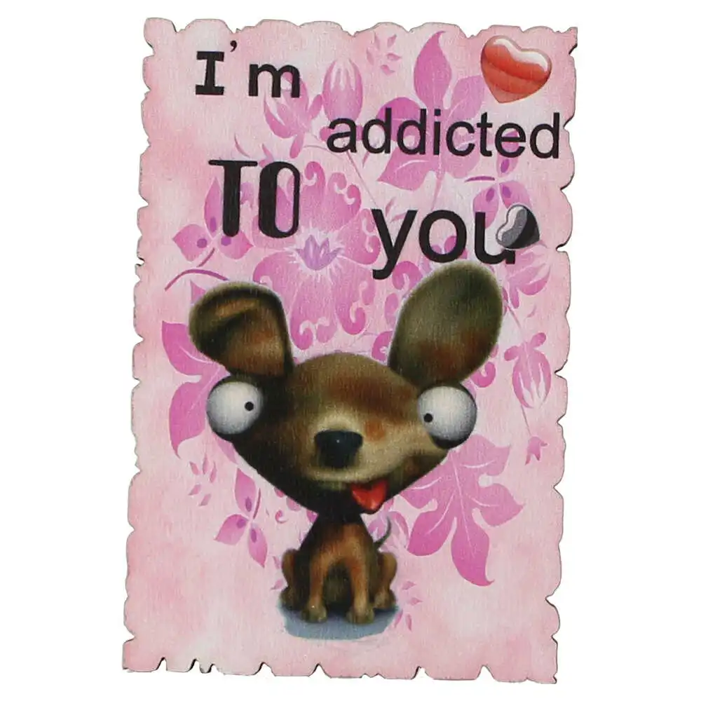 Magnet frigider din lemn „I’m addicted to you” 6×9 CM