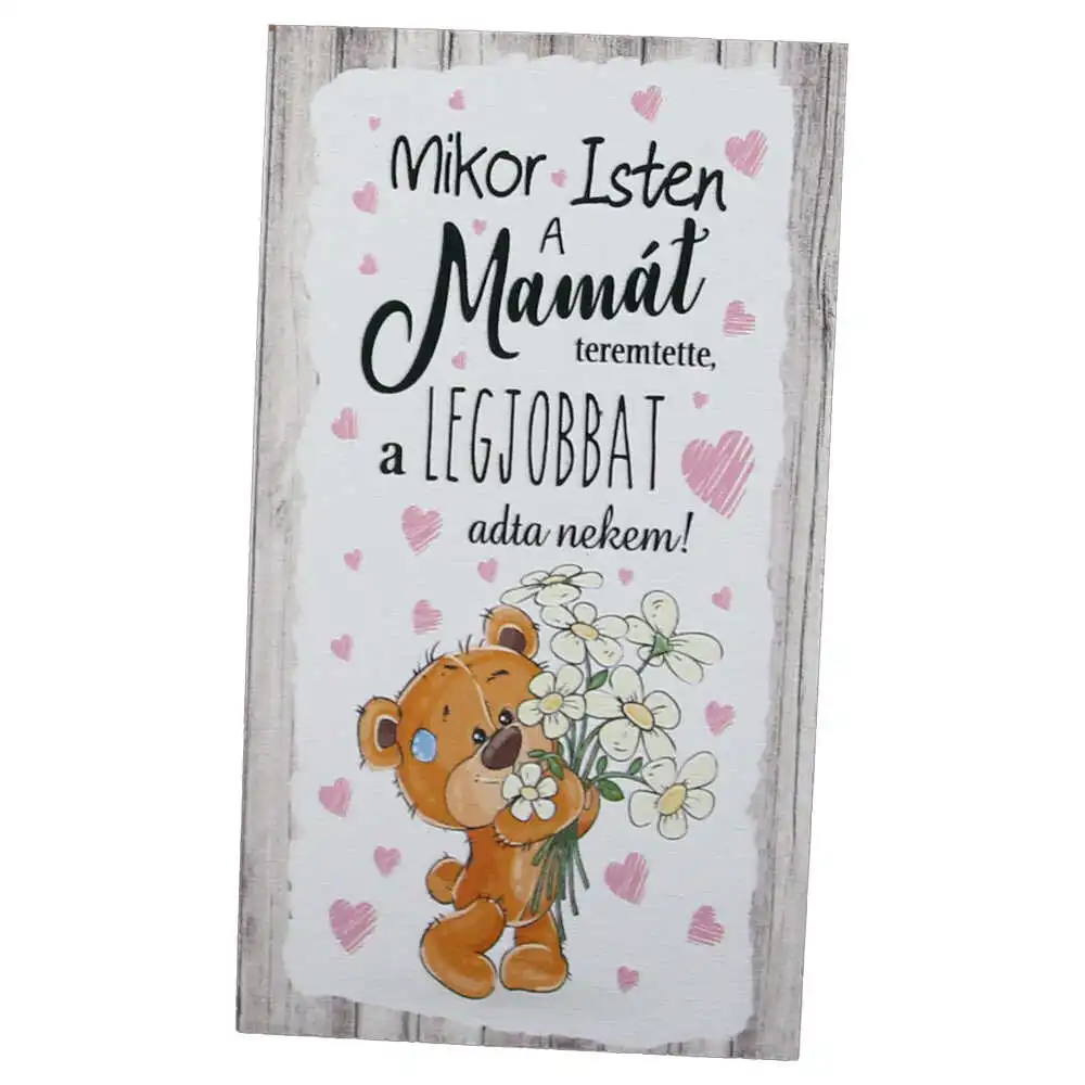 Magnet frigider din lemn „Mikor Isten a Mamat teremtette…” 8×14 CM