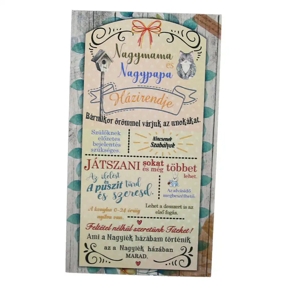 Magnet frigider din lemn „Nagymama es Nagypapa hazirendje…” 8×14 CM