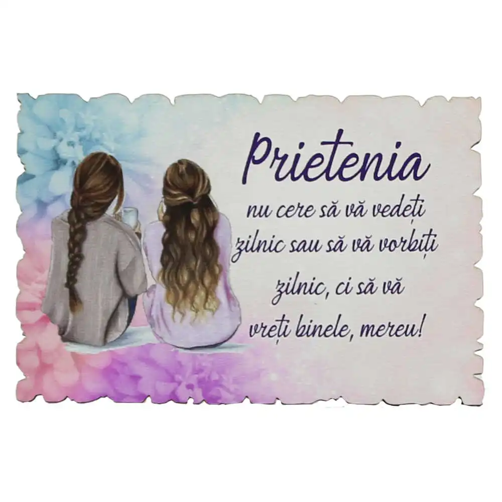 Magnet frigider din lemn „Prietenia nu cere sa va vedeti…” 9×6 CM
