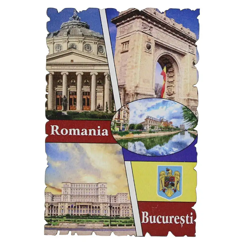 Magnet frigider din lemn „Romania” 6×9 CM, Bucuresti, colaj