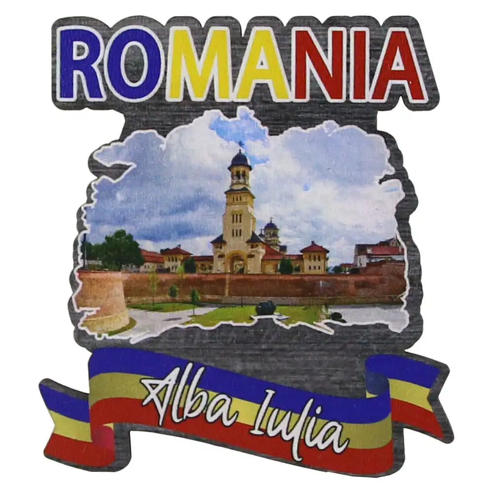 Magnet frigider din lemn „Romania” 7.5×8 CM, Alba Iulia, tricolor