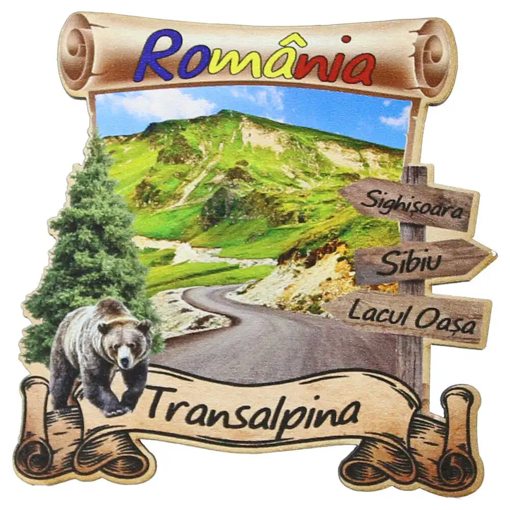Magnet frigider din lemn „Transalpina” 8×8 CM, Romania