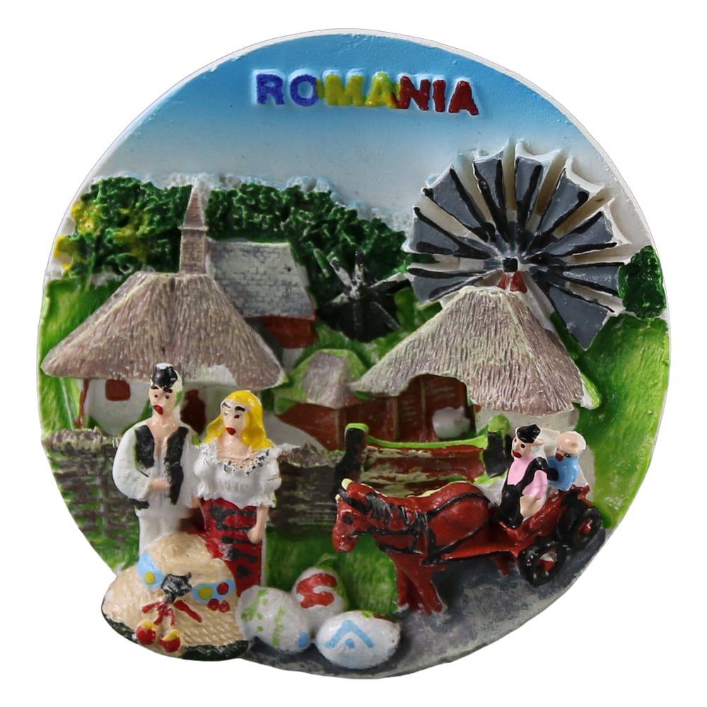 Magnet frigider din rasina „Romania” 6.5 cm, Scena traditionala
