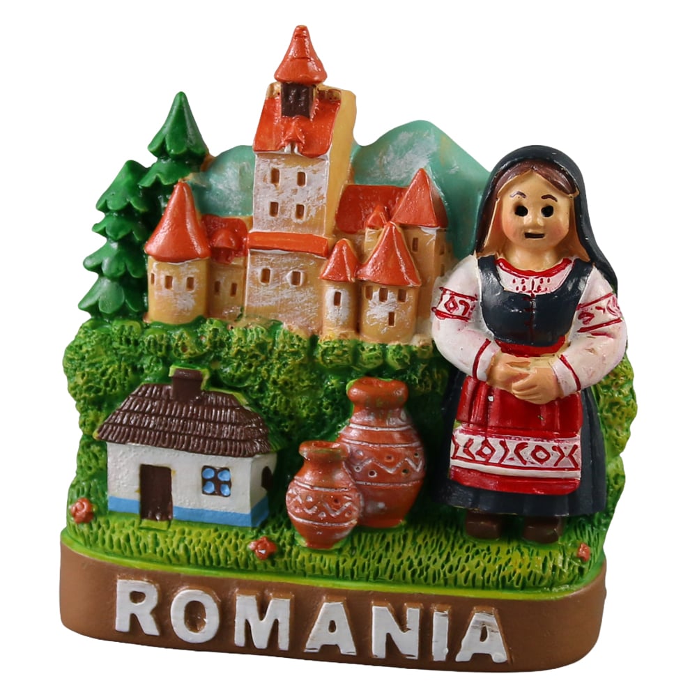 Magnet frigider din rasina „Romania” 7.5 x 8 cm, Femeie cu ulcioare
