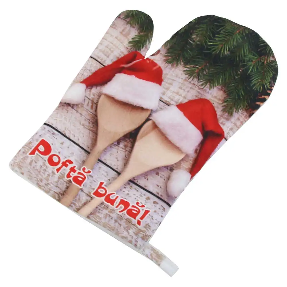 Manusa de bucatarie „Pofta Buna!” 16×27 CM, Caciula Mos Craciun