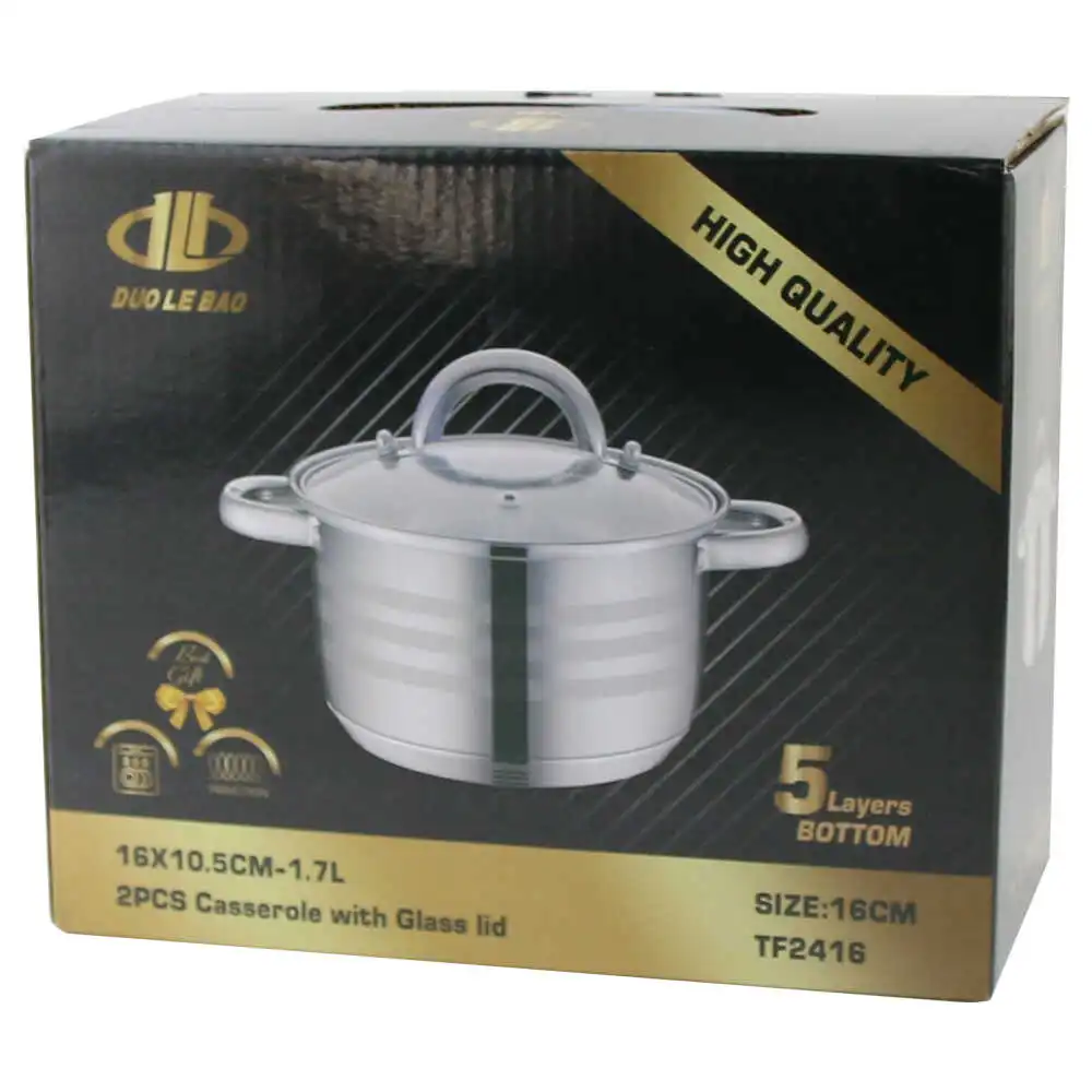 Oala din inox cu capac de sticla 1.7 L, 16×10.5 cm , Duo Le Bao