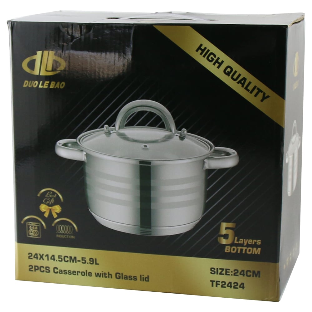 Oala din inox cu capac de sticla 5.9 L, 24×14.5 cm , Duo Le Bao