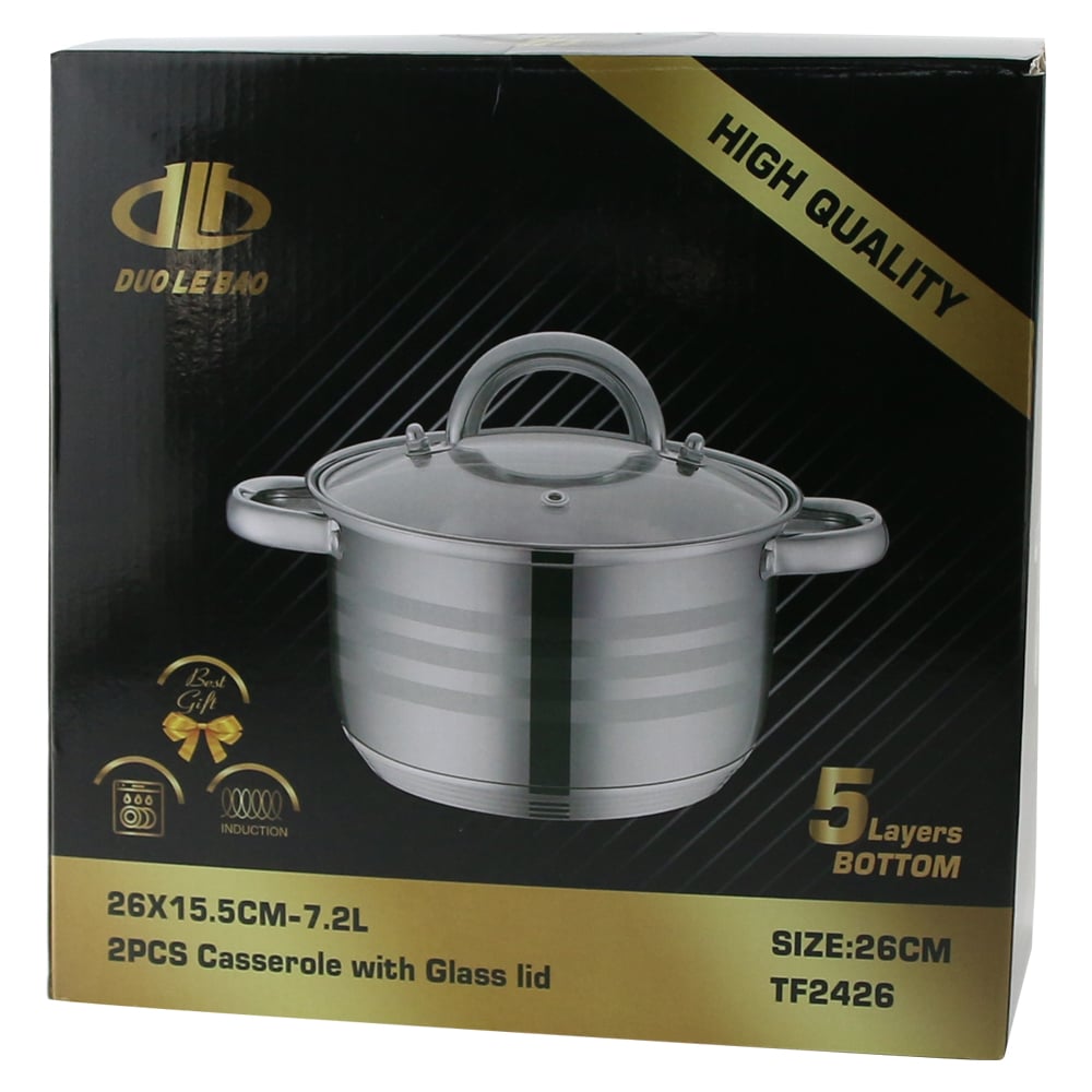 Oala din inox cu capac de sticla 7.2 L, 26×15.5 cm , Duo Le Bao
