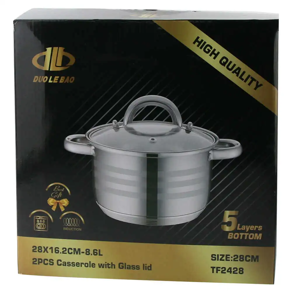 Oala din inox cu capac de sticla 8.6 L, 28×16.2 cm , Duo Le Bao