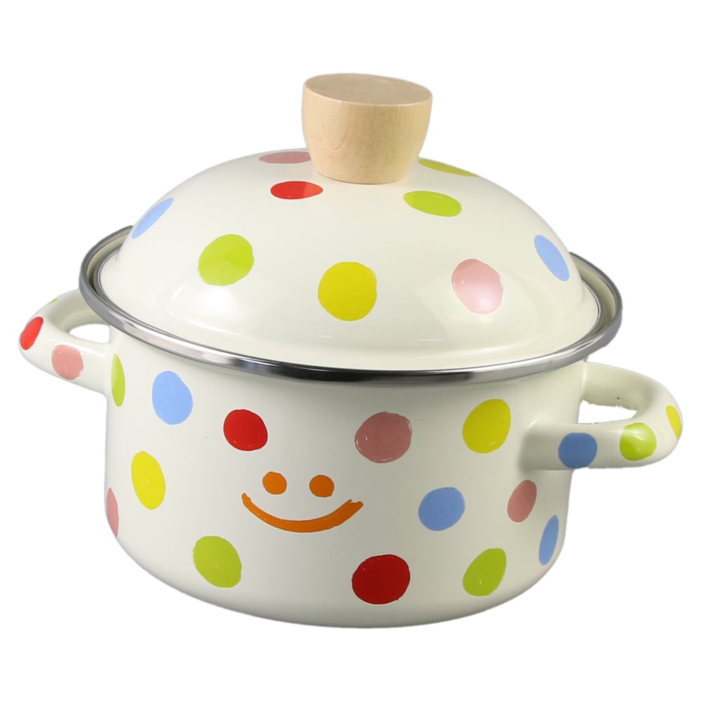 Oala emailata cu capac 16×9 CM, Buline colorate