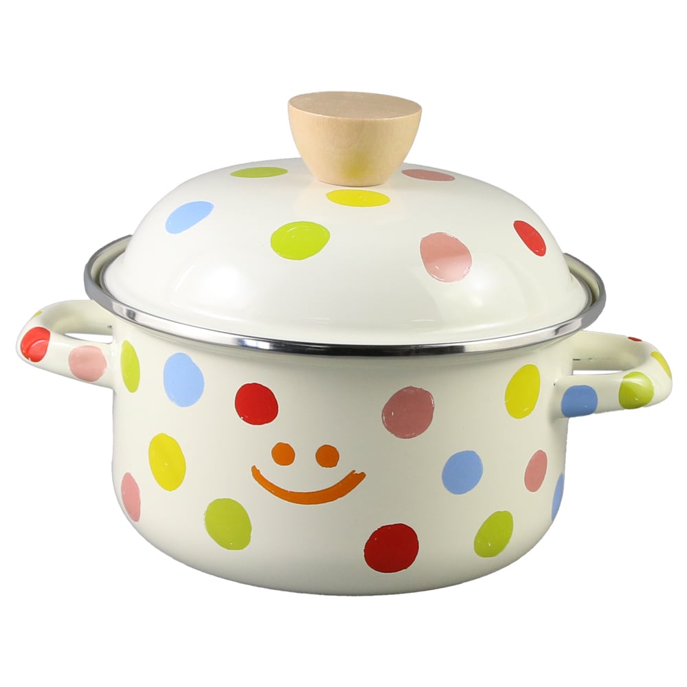Oala emailata cu capac 18×9.5 CM, Buline colorate
