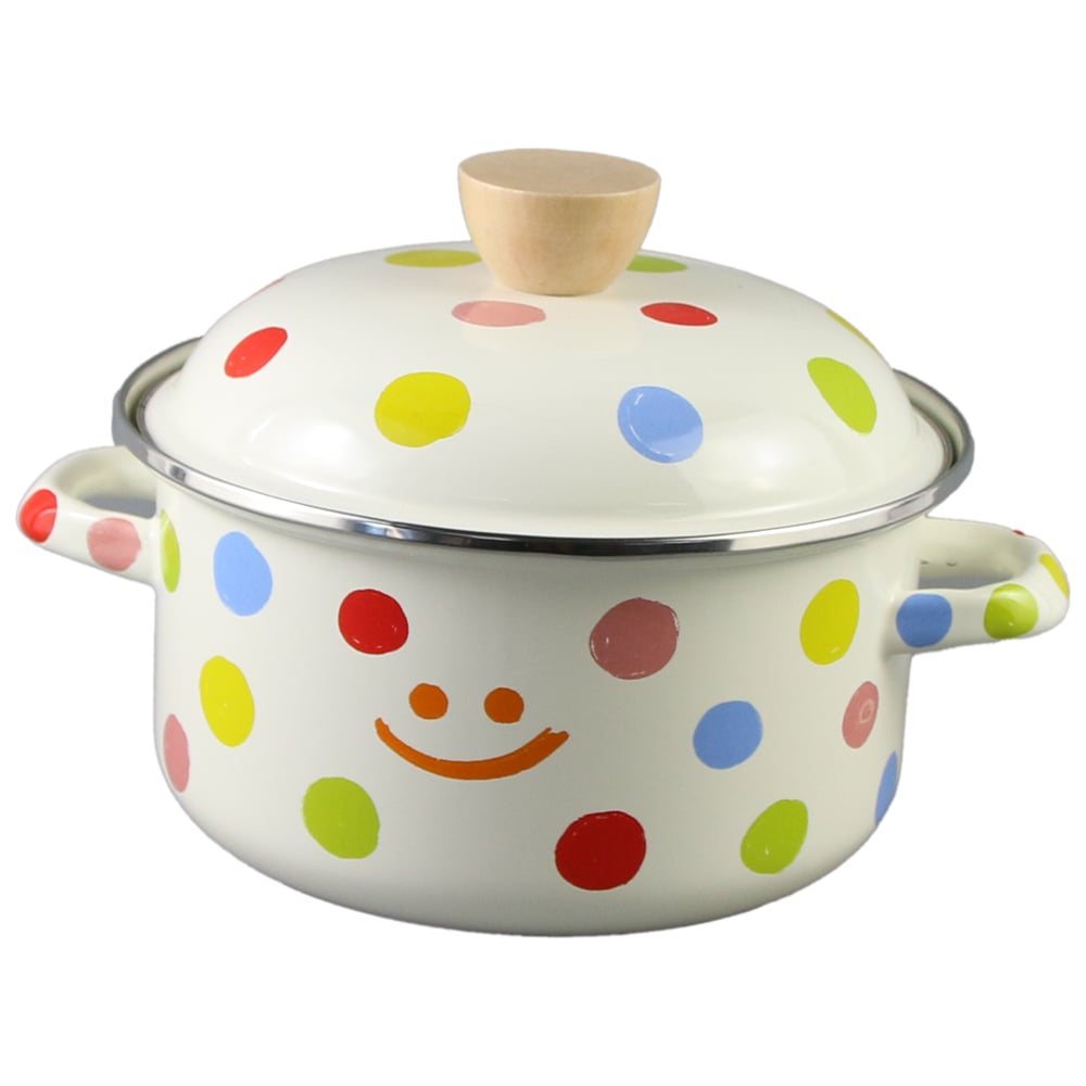 Oala emailata cu capac 20×10 CM, Buline colorate