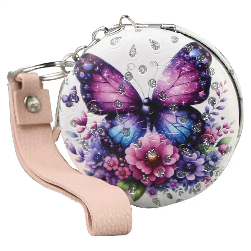 Oglinda de buzunar cu breloc 7 CM, din metal, Fluture