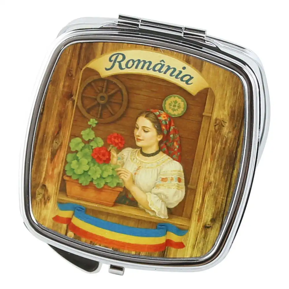 Oglinda de buzunar, „Romania”, tarancuta cu muscata, 6×7 CM