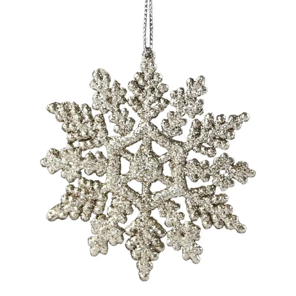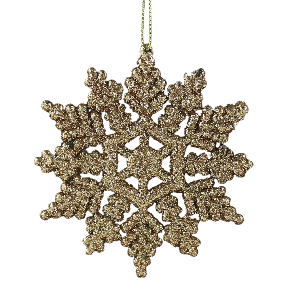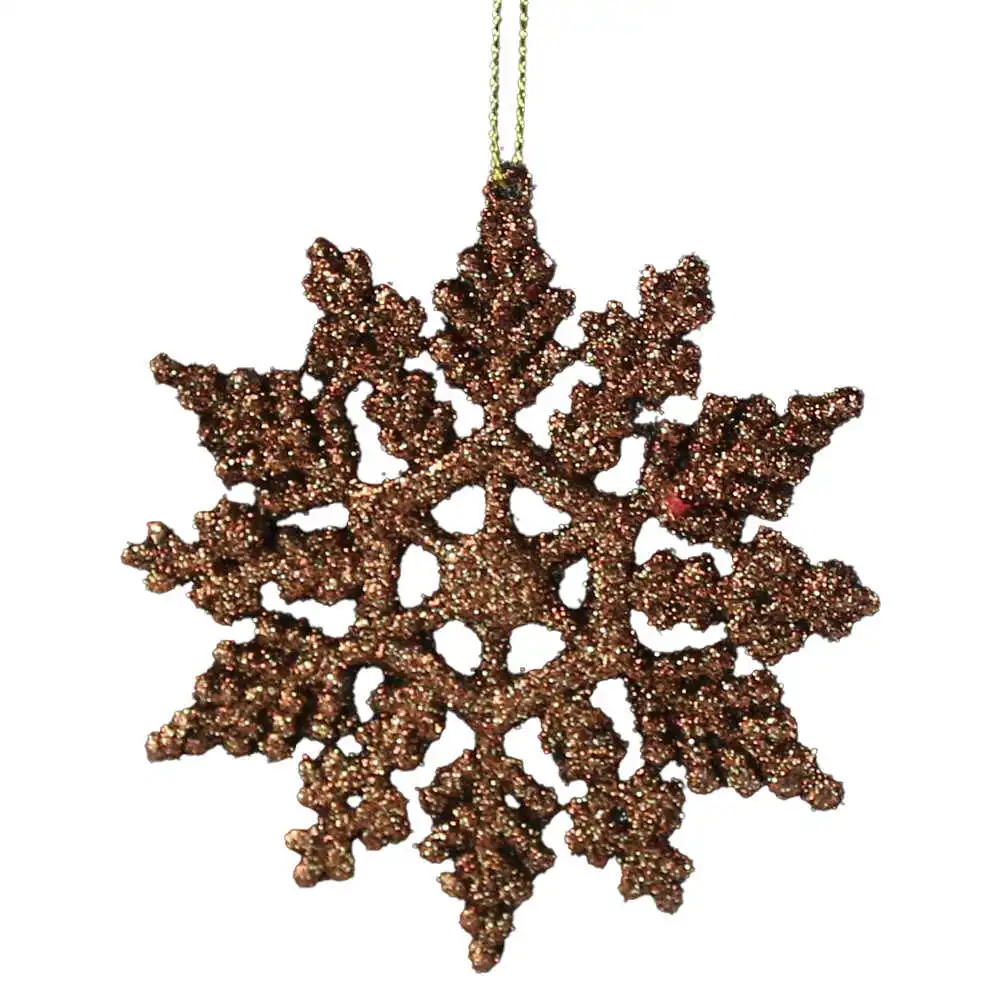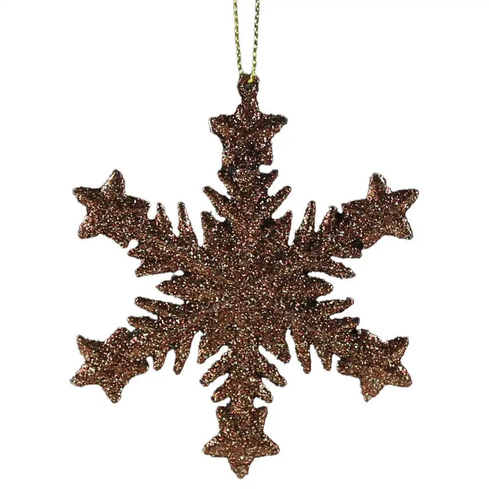 Ornament brad cu glitter, Fulg de nea, 10 CM, auriu/maro