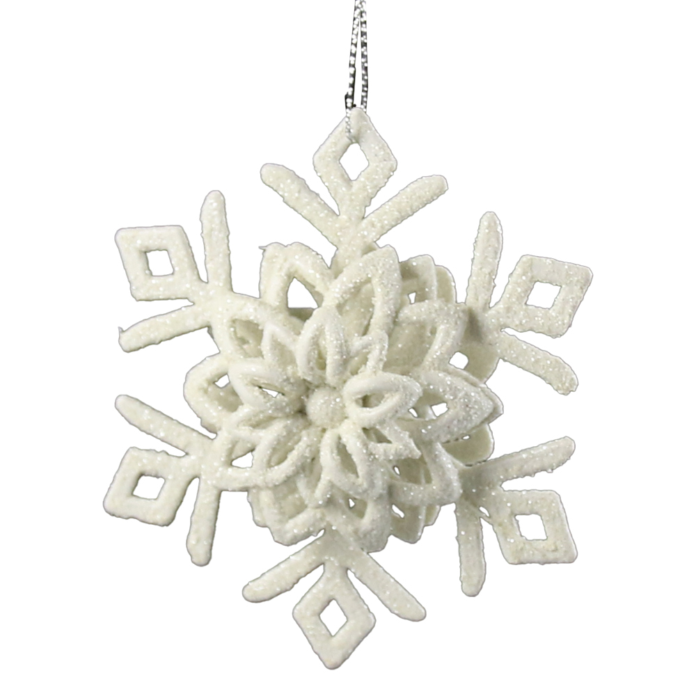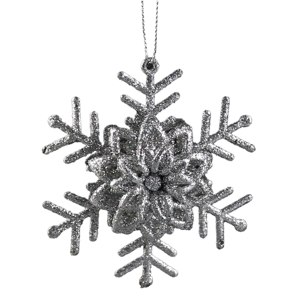 Ornament brad cu glitter, Fulg de nea, 10 CM, m. 450