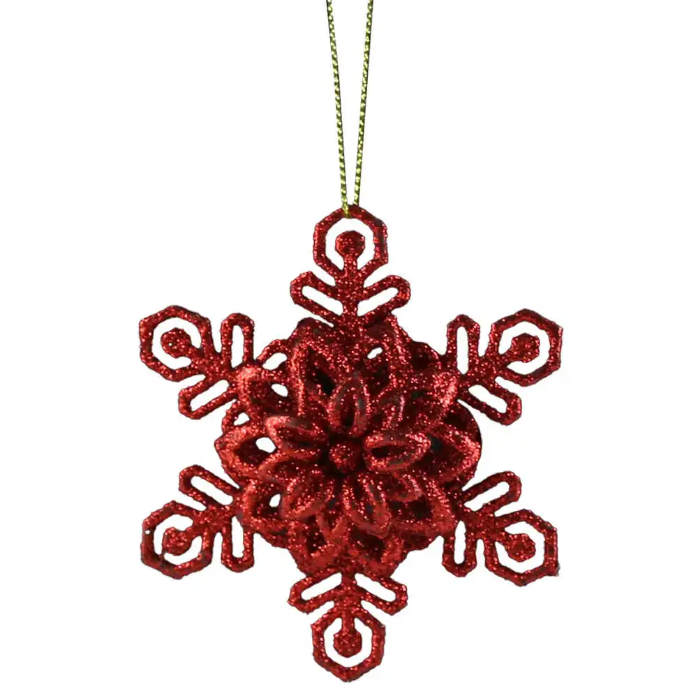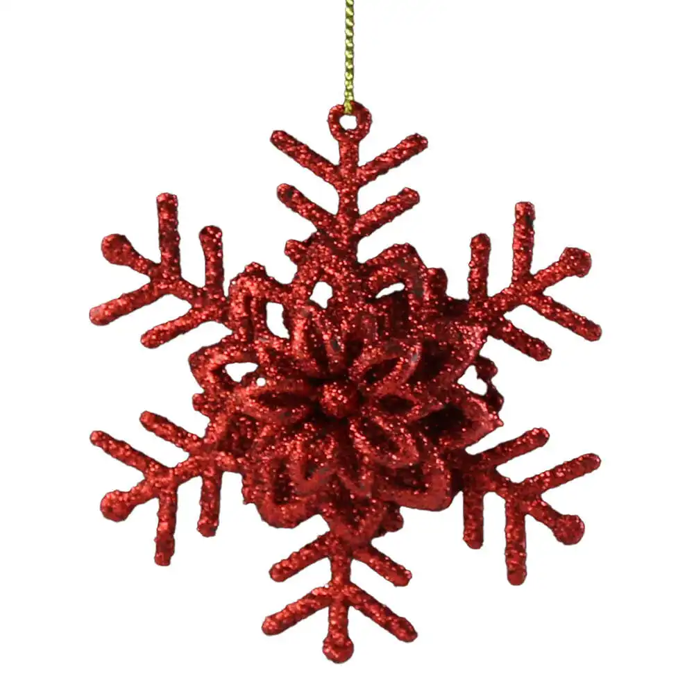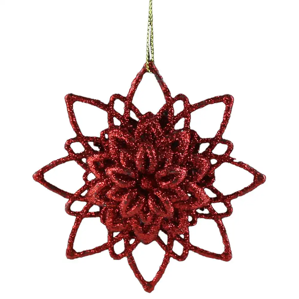 Ornament brad cu glitter, Fulg de nea, 10 CM, rosu