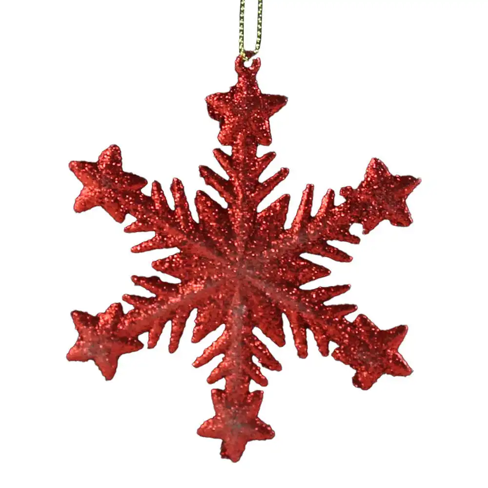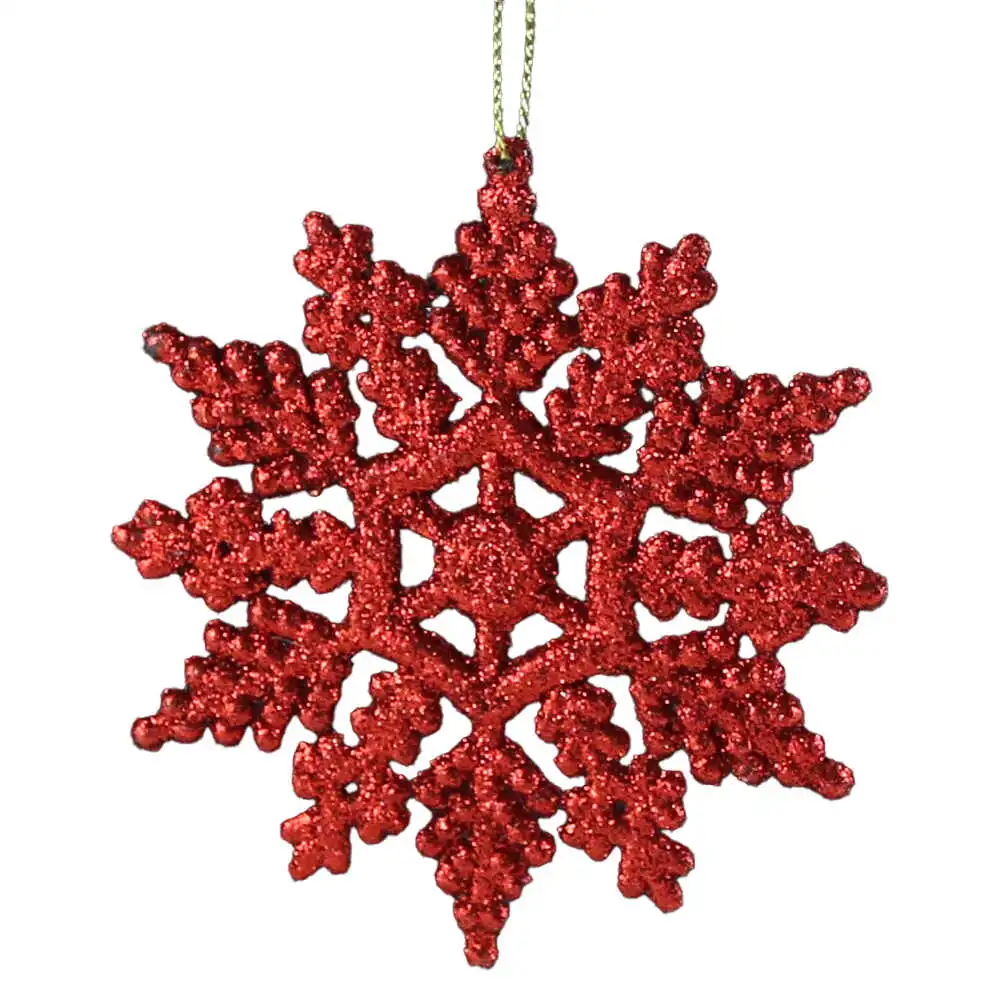 Ornament brad Fulg de nea 10 CM, Rosu cu glitter