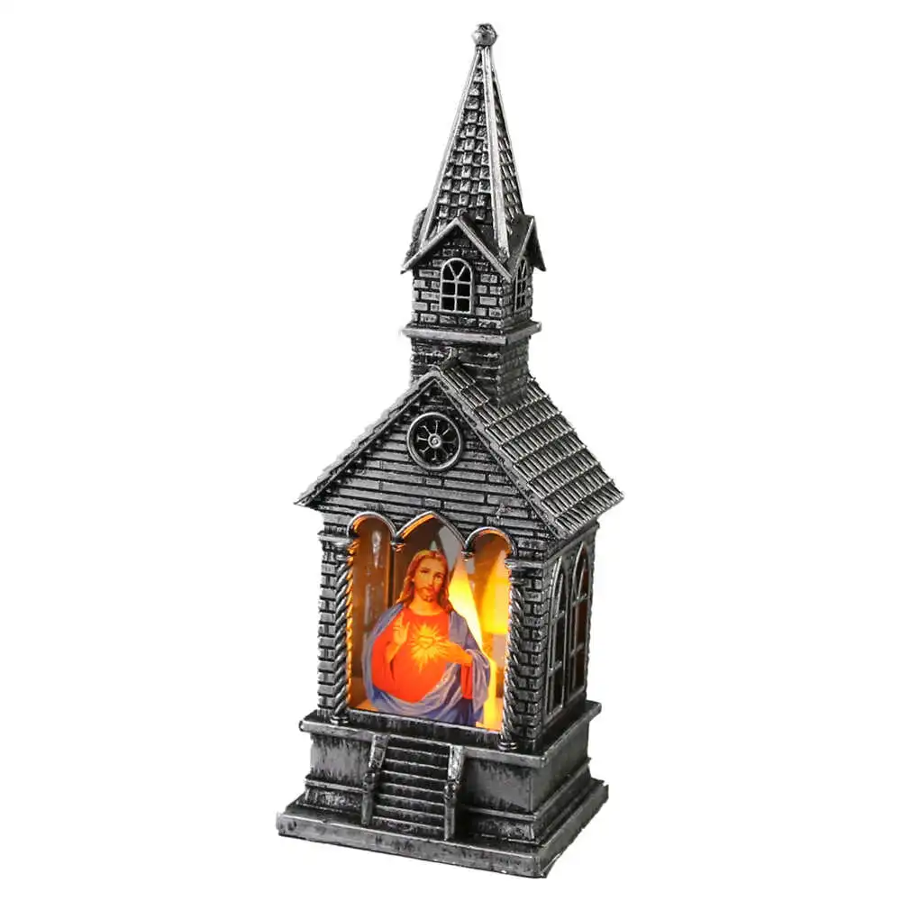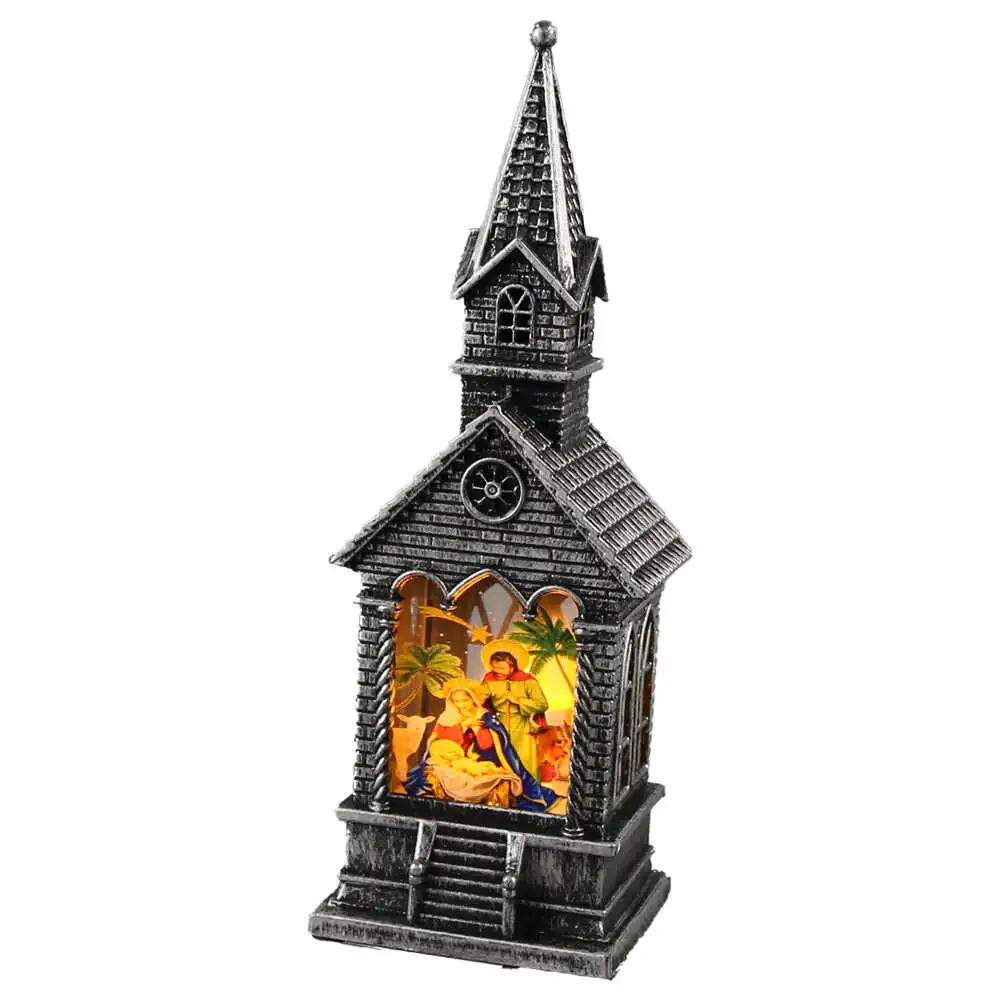Ornament Craciun Biserica cu led, din plastic, 6×17 CM