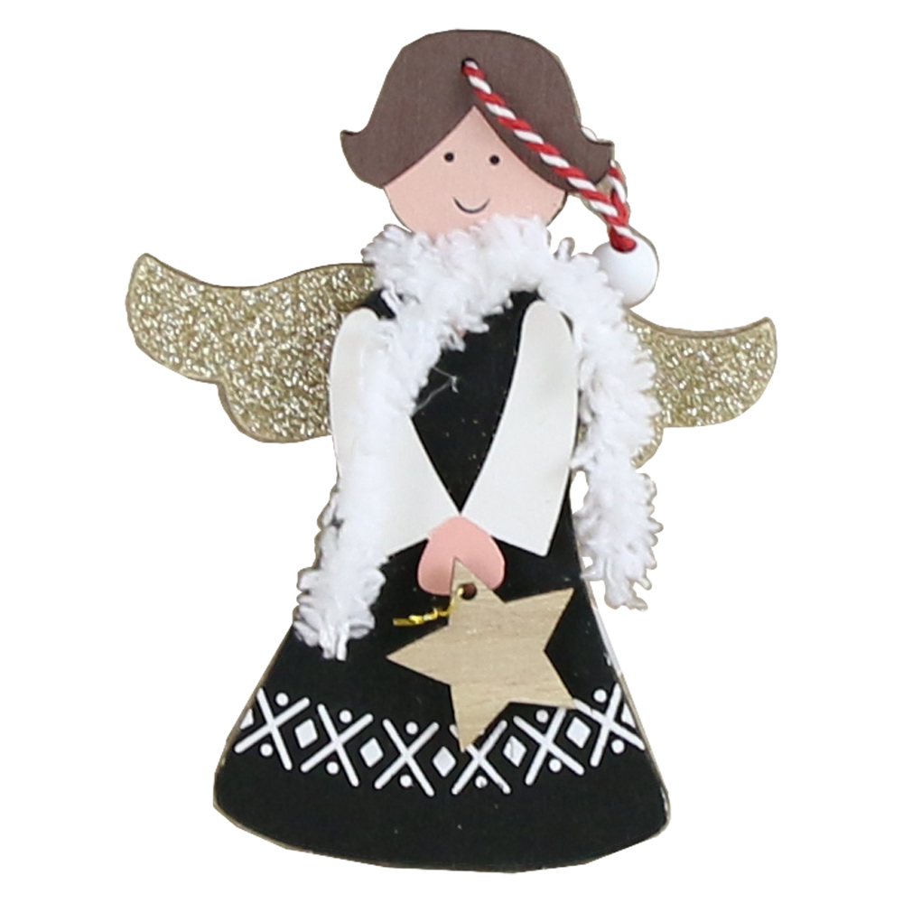 Ornament de brad din lemn Inger 12 CM, negru