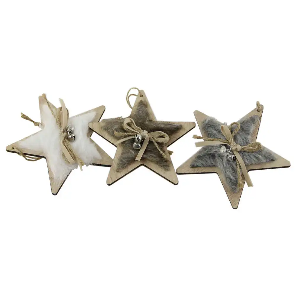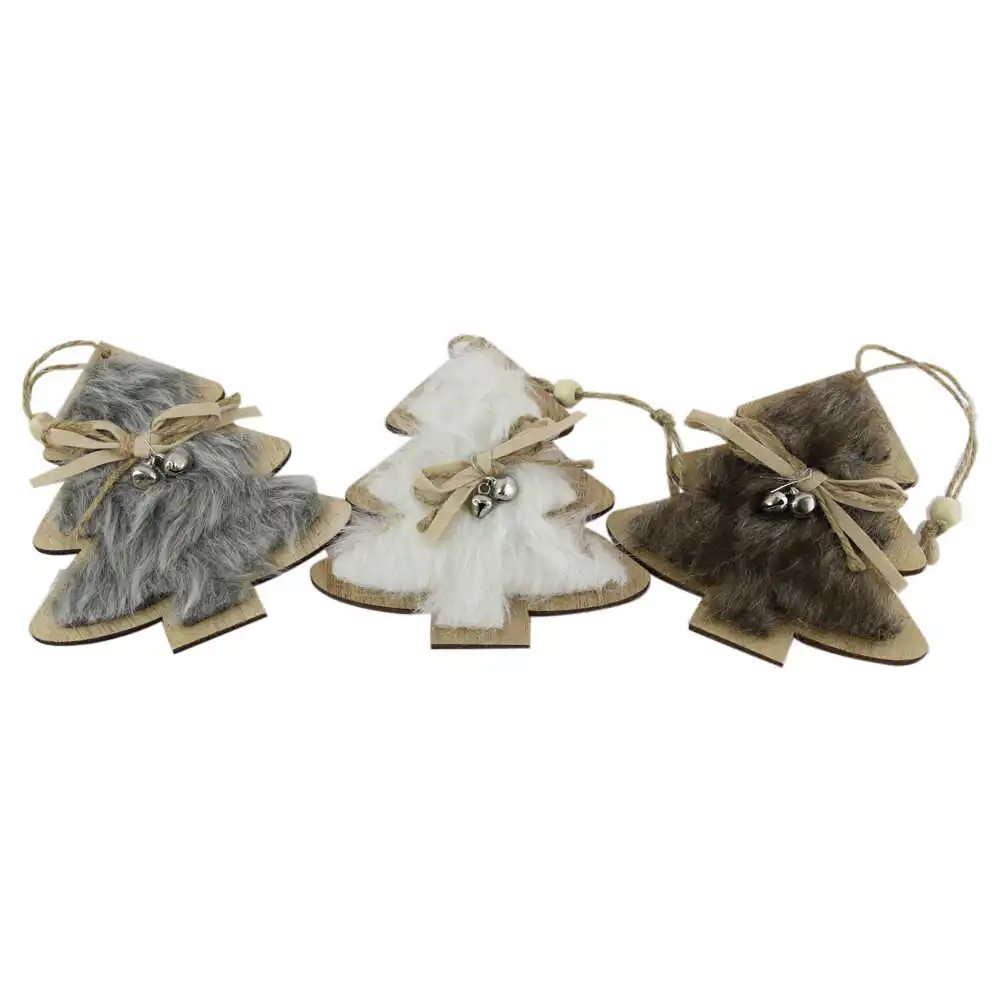 Ornament de brad din lemn si blana 9 CM Brad/Steluta/Inimioara