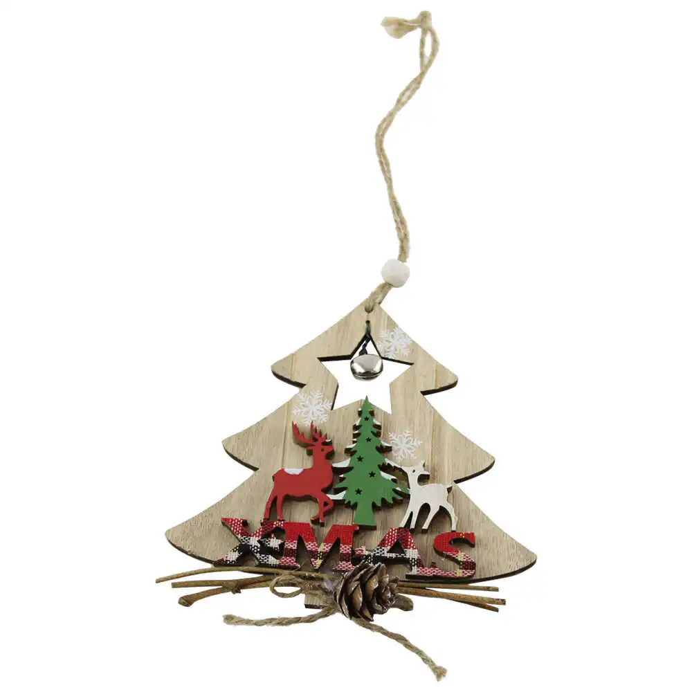 Ornament de brad din lemn Xmas cu clopotei 12 CM