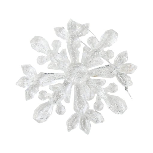 Ornament de brad, Fulg de nea din platic, 12 CM, Transparent/argintiu