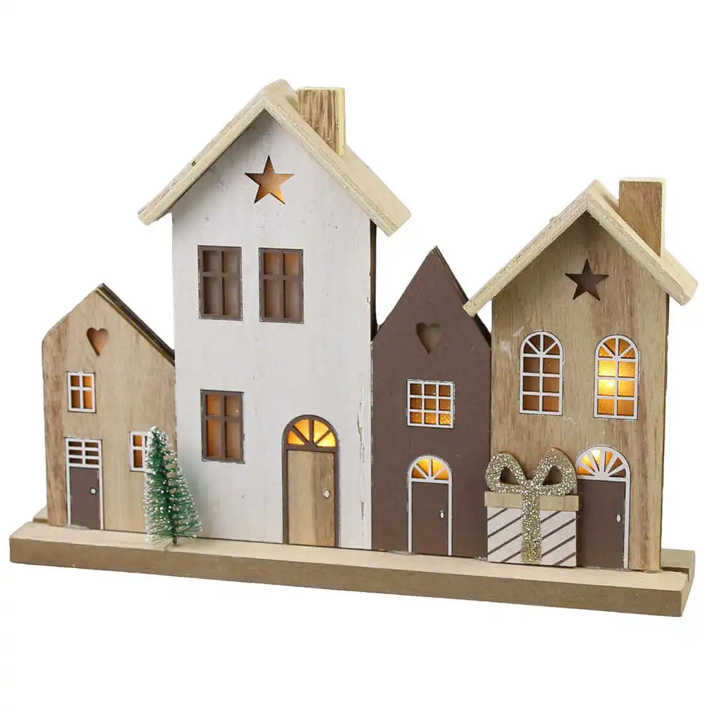Ornament de Craciun din lemn cu LED, Casute 23.5×17 CM