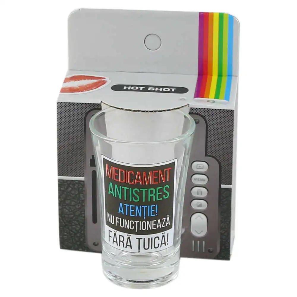 Pahar shot 35 ml „Medicament Antistres…”, in ambalaj decorativ